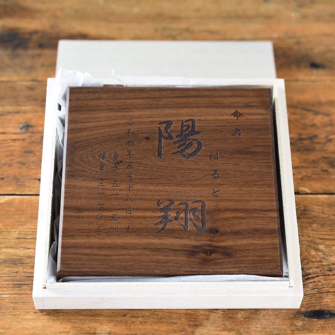 『名前』は親から子へ贈る、はじめてのプレゼントですね。そんな心を込めて名付けた大切なお名前を、ぬくもり溢れる『木の命名書』として残しませんか?