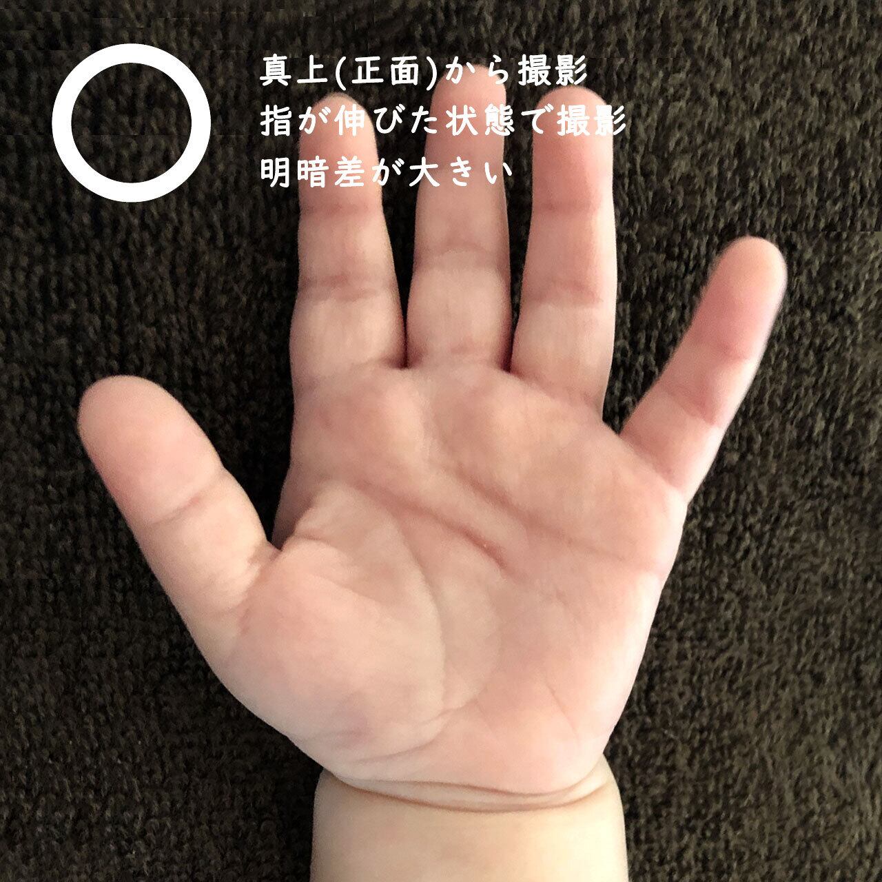 指が伸びた状態での撮影が難しい場合は「透明のCDケース」など、透明な板に押し当てて撮影して下さい。